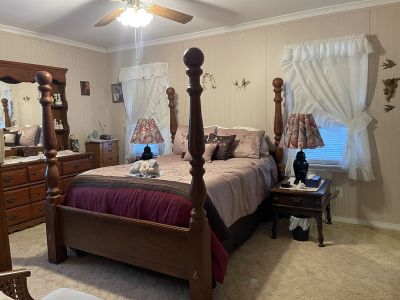 Inside, you'll find a welcoming dining room accented by a beam ceiling, adding timeless character, along with a separate breakfast room perfect for casual meals. An additional full bathroom serves guests and the second bedroom.